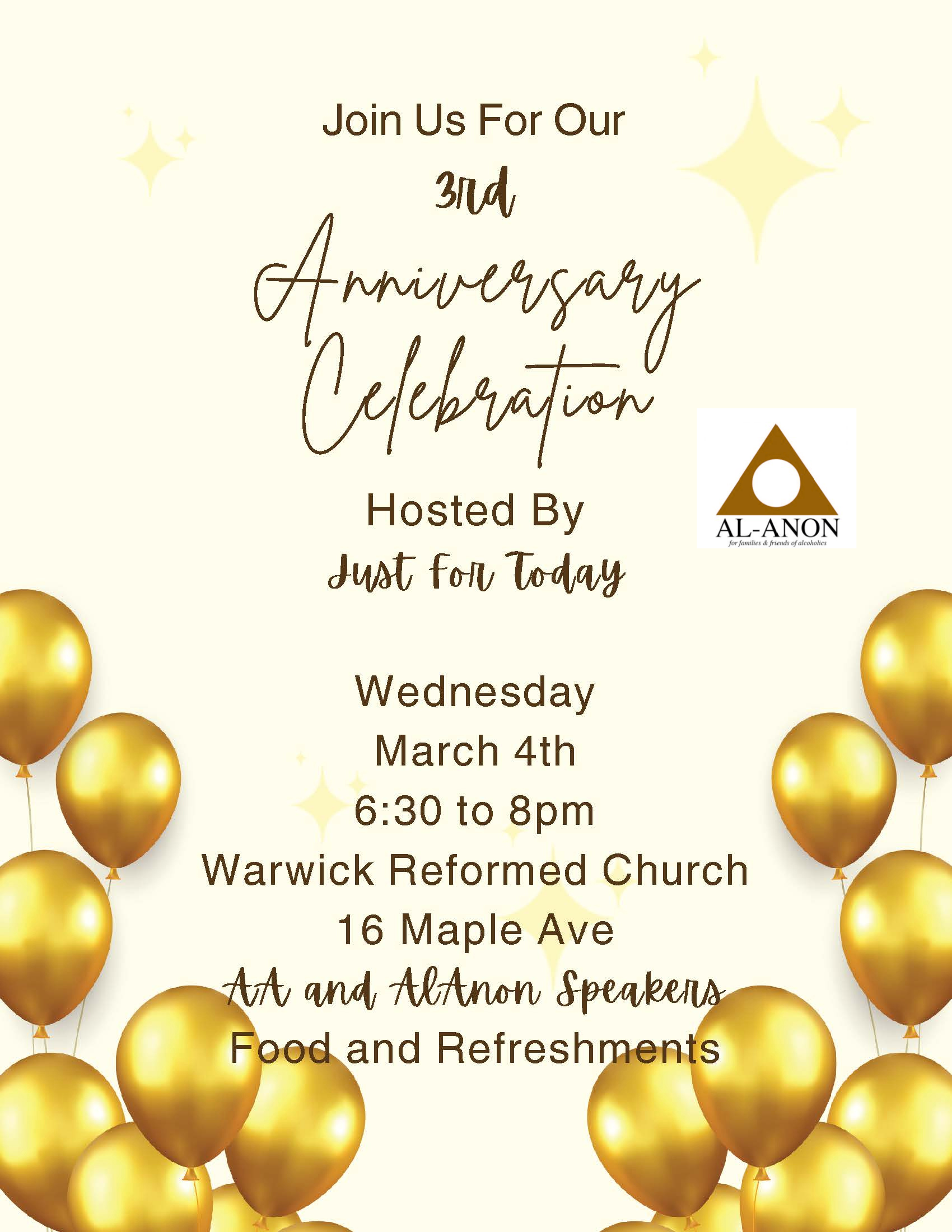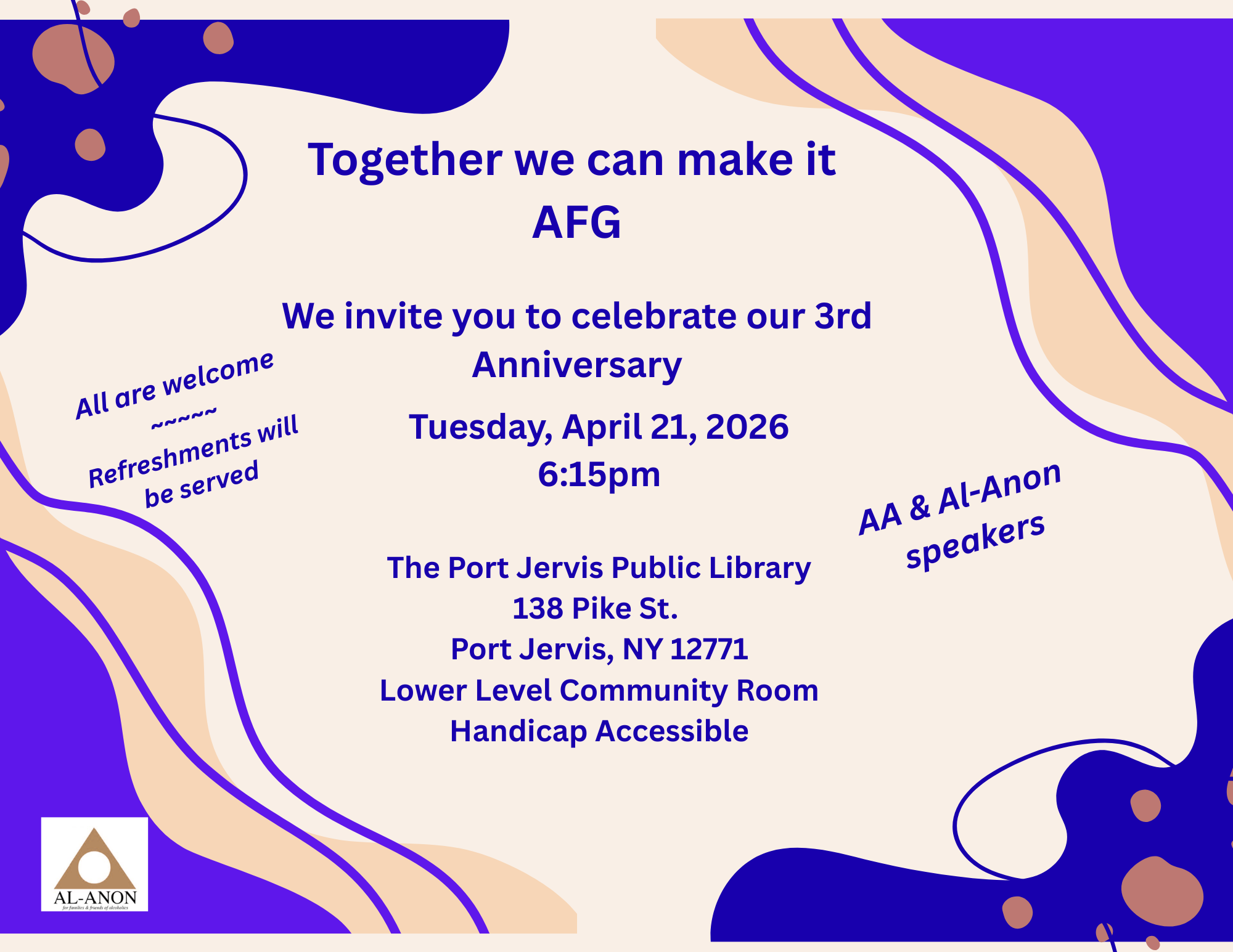 Submit your flyer to webperson@al-anon-ocny.info by the 15th of the month before your event.